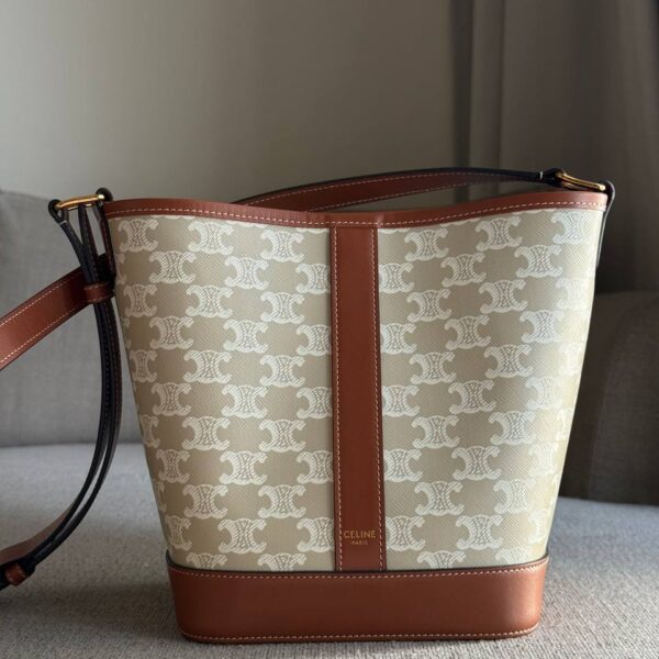 Celine Medium Bucket in Triomphe Canvas and Calfskin