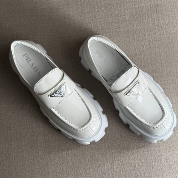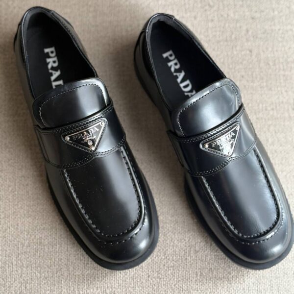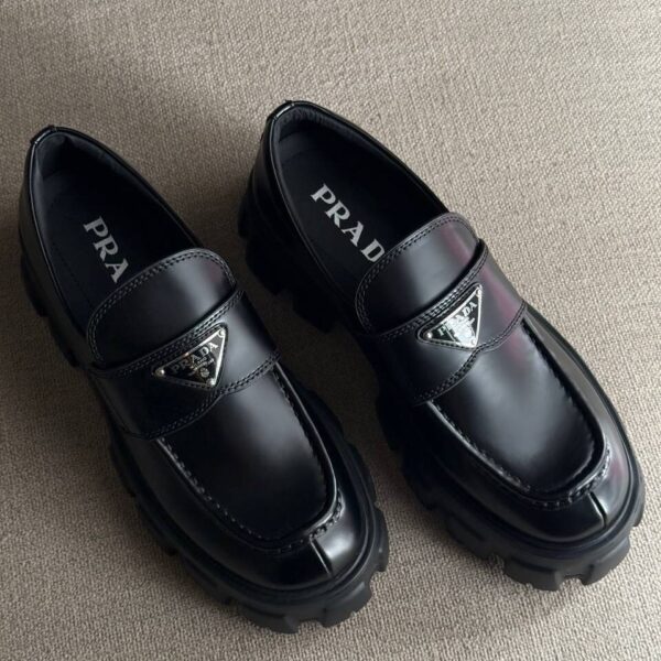 Prada Brushed Leather Monolith Loafers – Patent Leather Black
