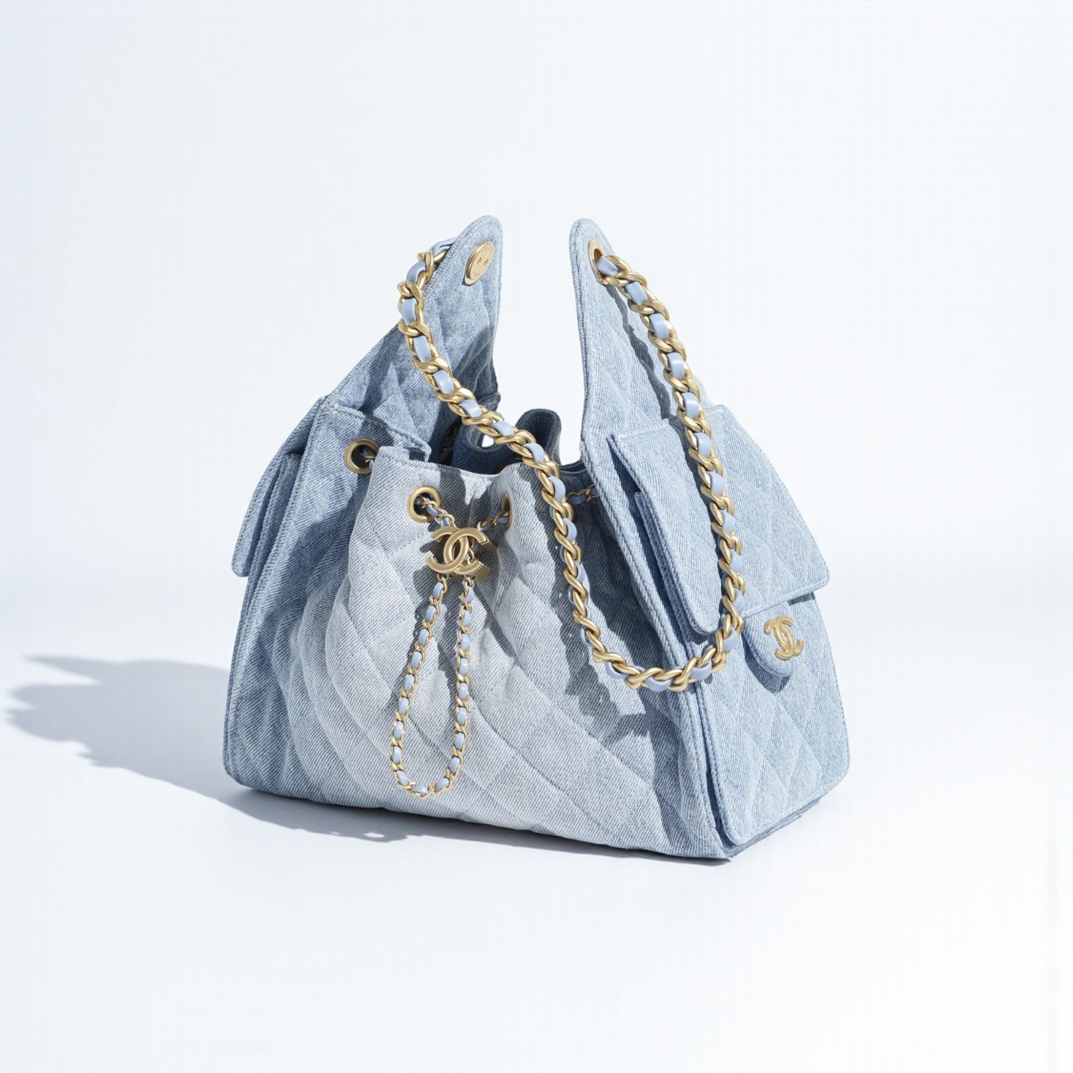 Materials Washed Denim & Gold-Tone Metal Color Blue Size 30 x 26 x 14cm