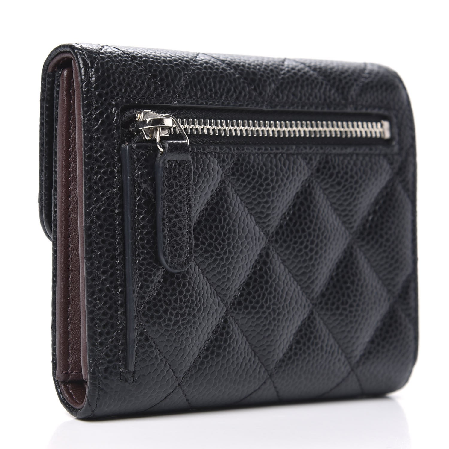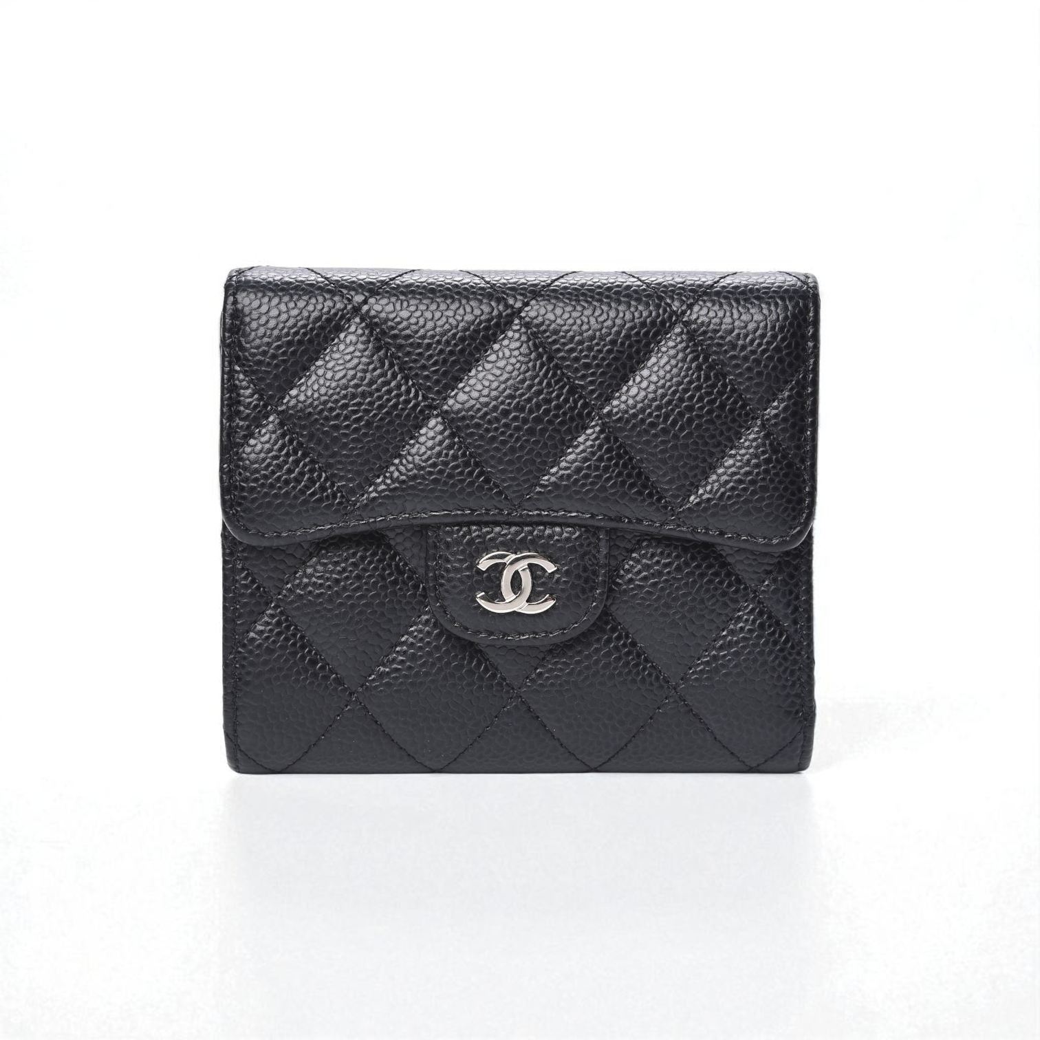 Materials Black Caviar Quilted Hardware Silver Hardware Size 11.5 x 10.5 x 2 cm Note: Box is slightly damaged.