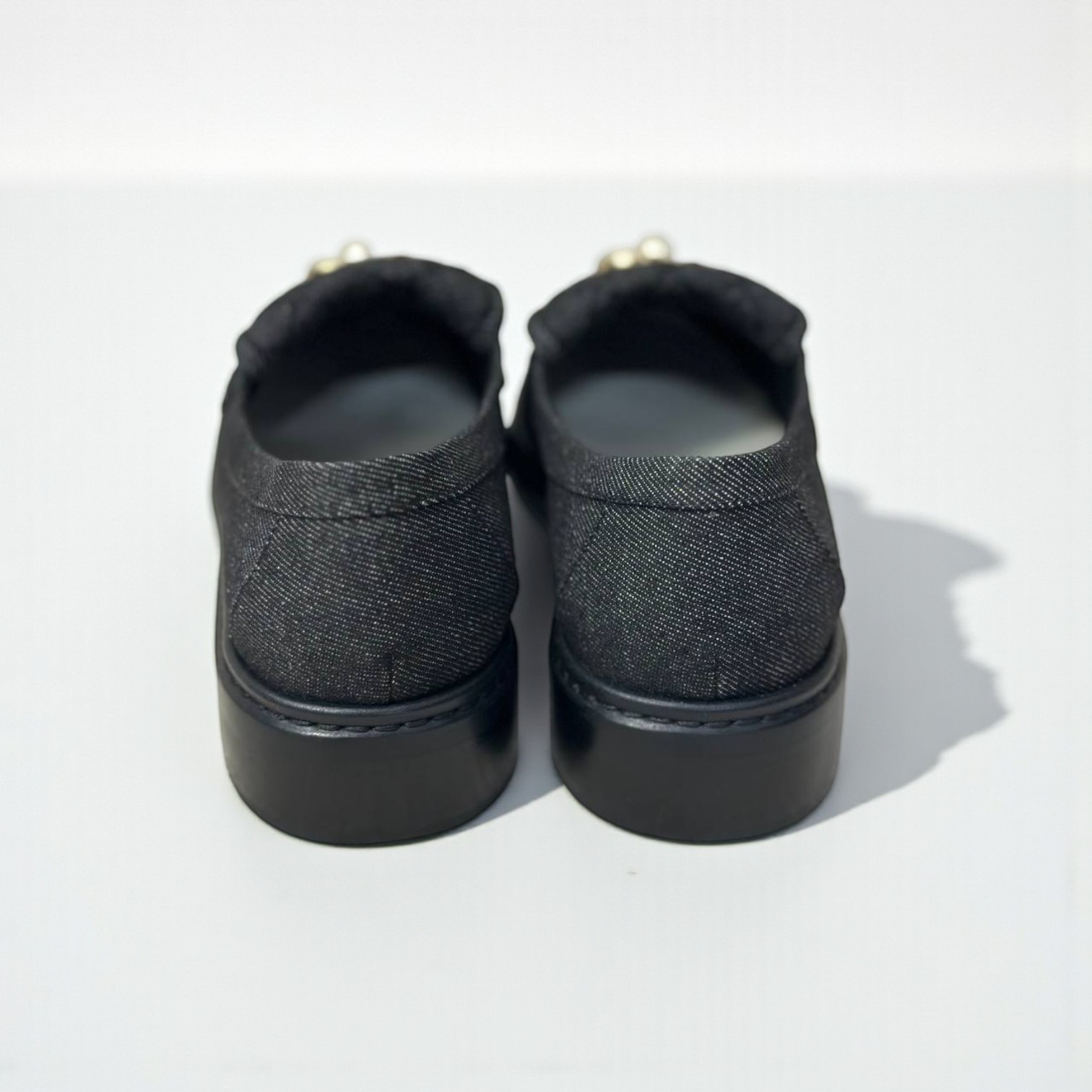 Materials Denim, Black Issue: Stitch and the quality of the shoes. Shoe box not good condition. Please see pictures for reference.