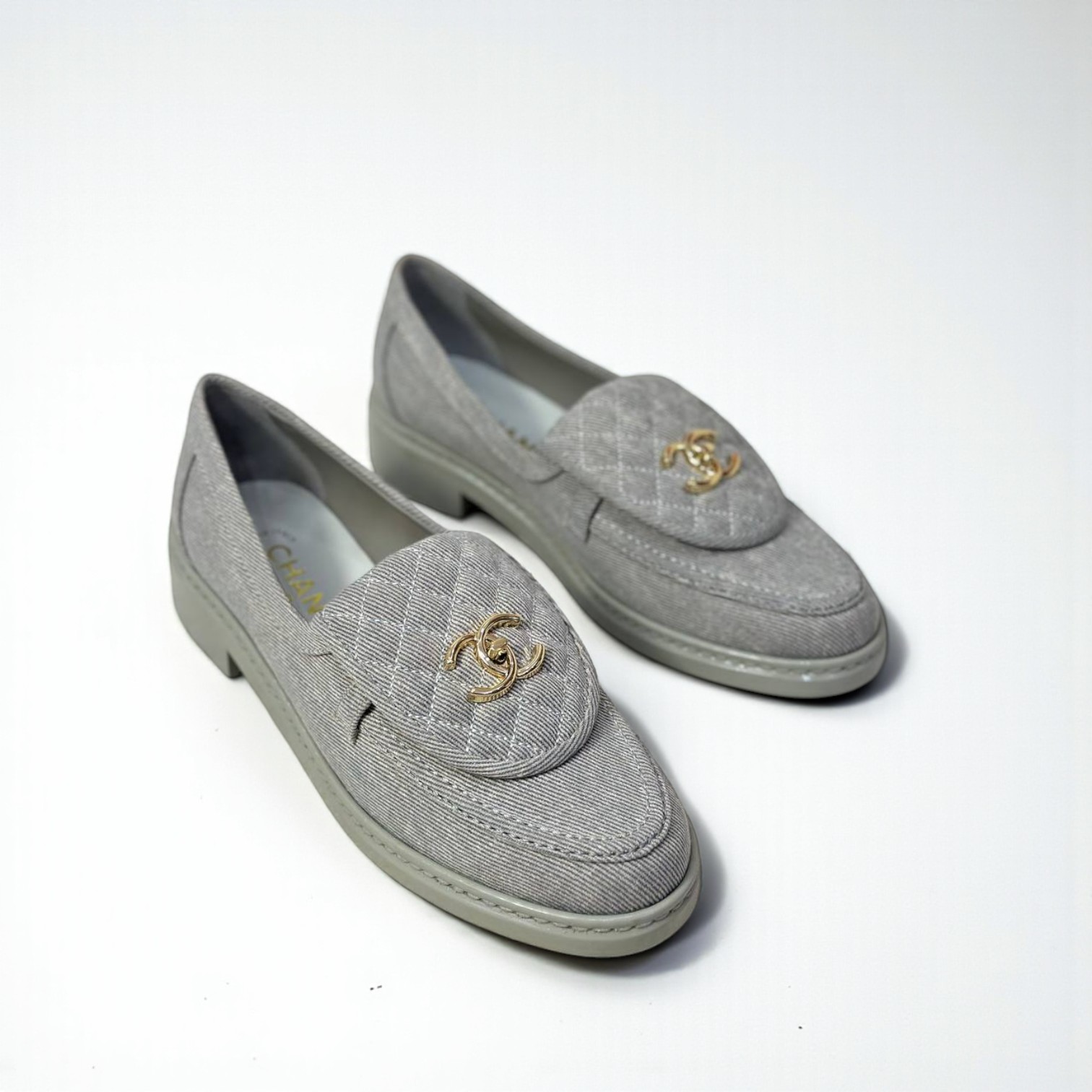 Materials Denim, Gray Issue: Stitch and the quality of the shoes. Shoe box not good condition. Please see pictures for reference.