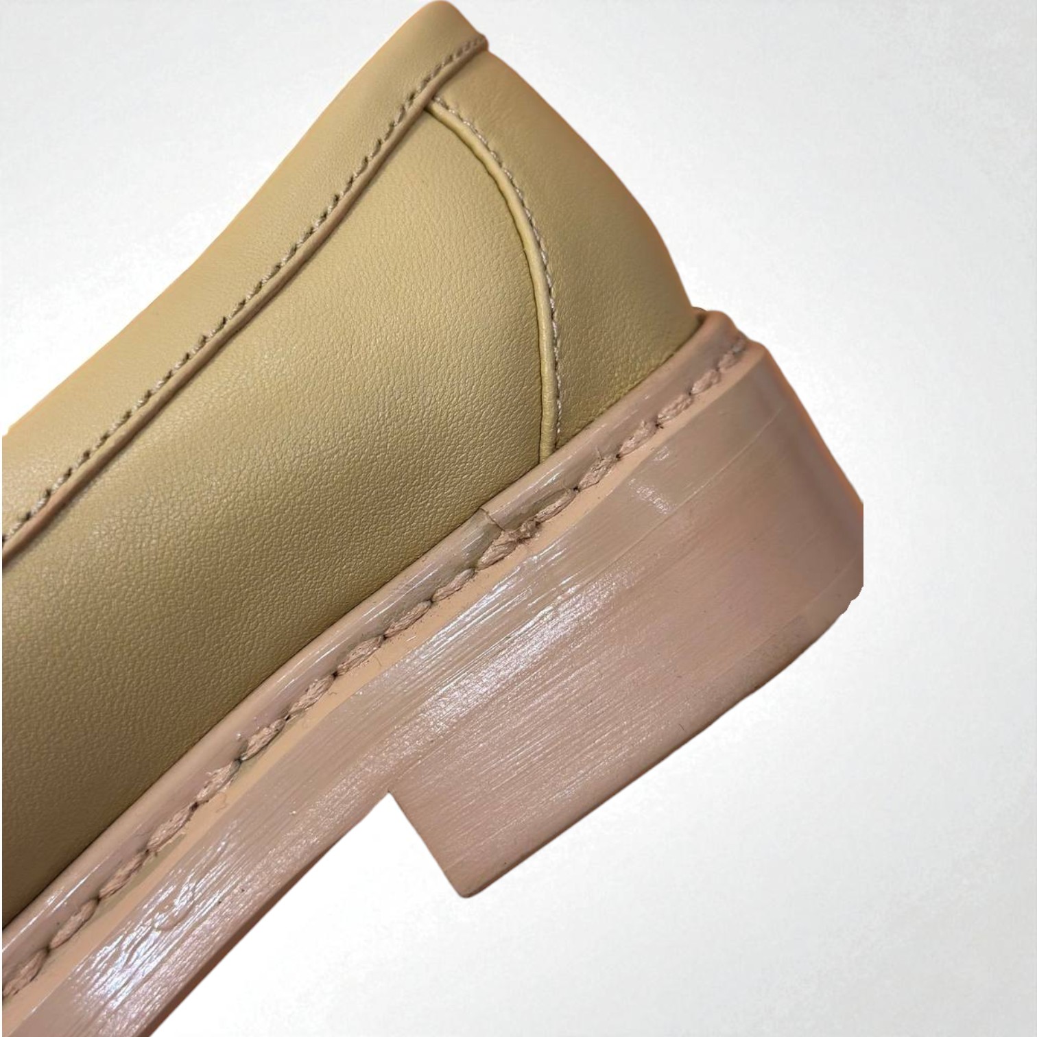 Materials Lambskin, Beige Issue: Stitch and the quality of the shoes. Shoe box not good condition. Please see pictures for reference.