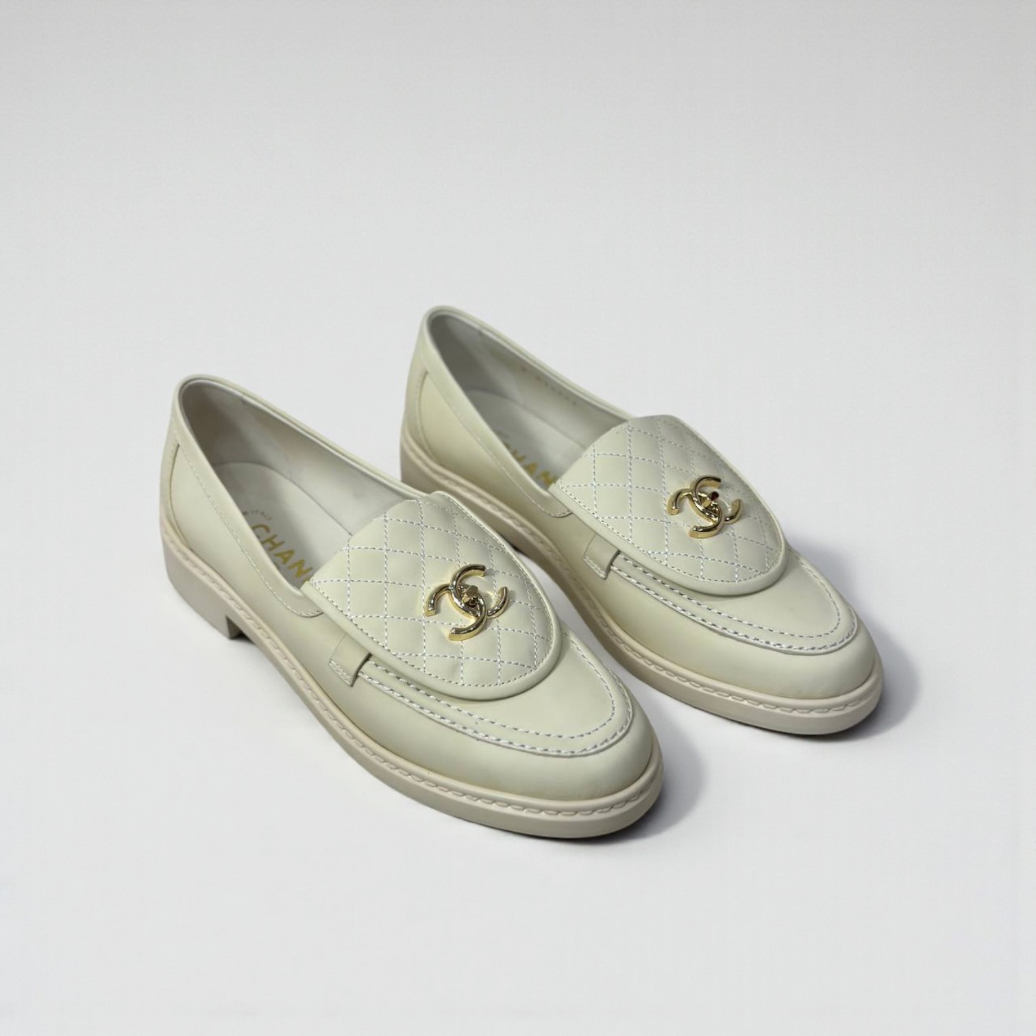 Materials Calfskin, Beige Issue: Stitch and the quality of the shoes. Shoe box not good condition. Please see pictures for reference.