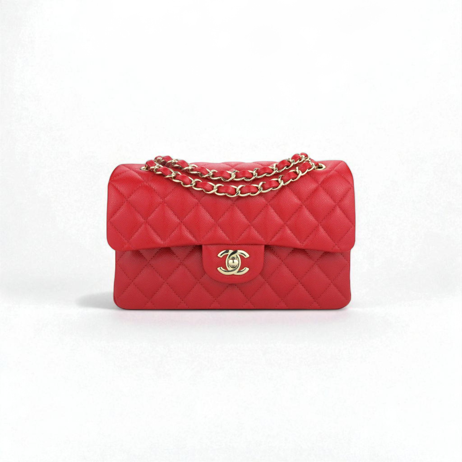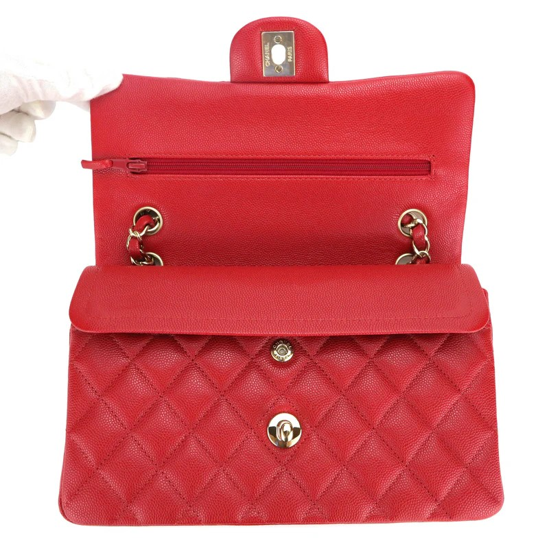 Materials Red Caviar Quilted Hardware Light Gold Hardware Size 23 cm