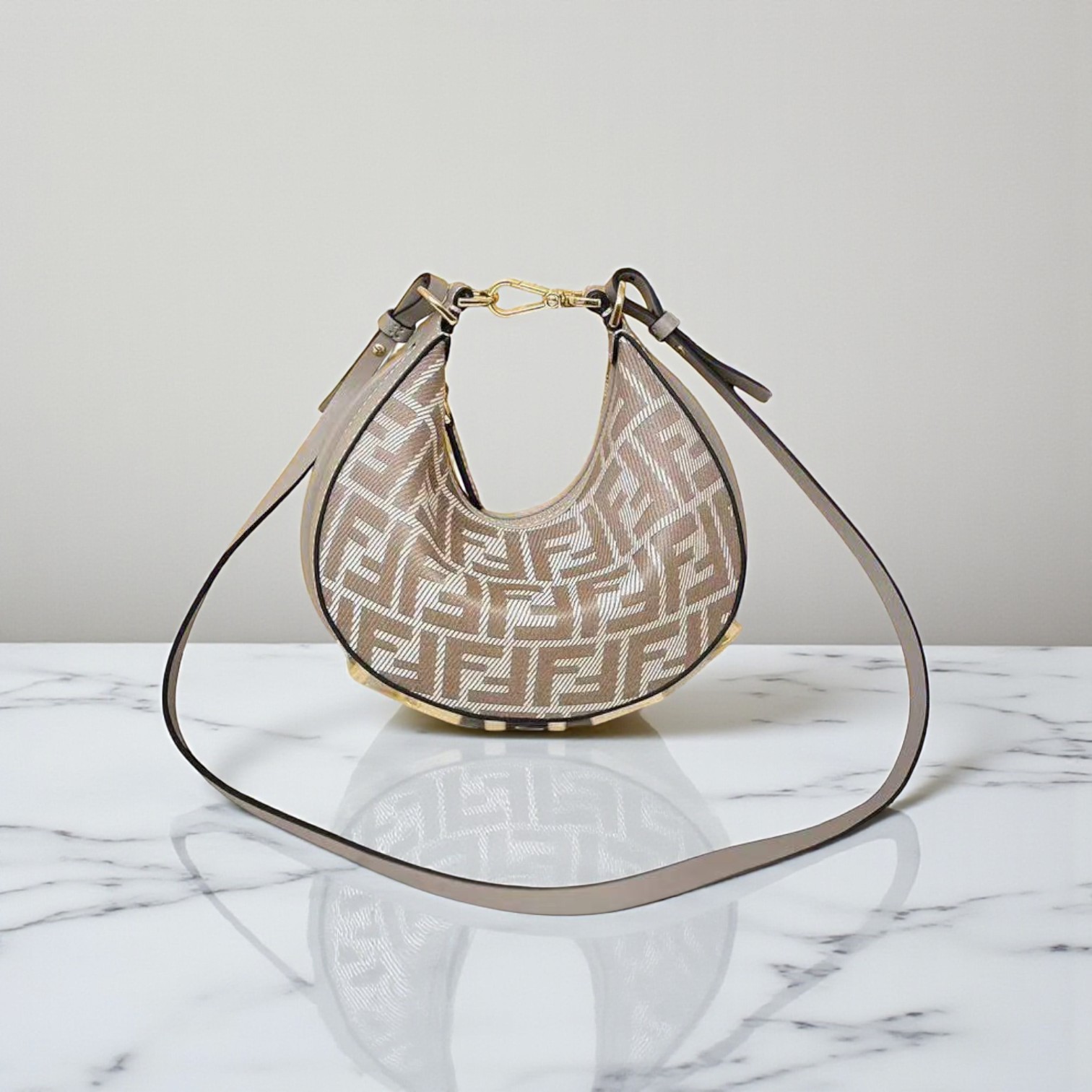 Materials Mini hobo bag made of dove gray FF jacquard motif fabric,
