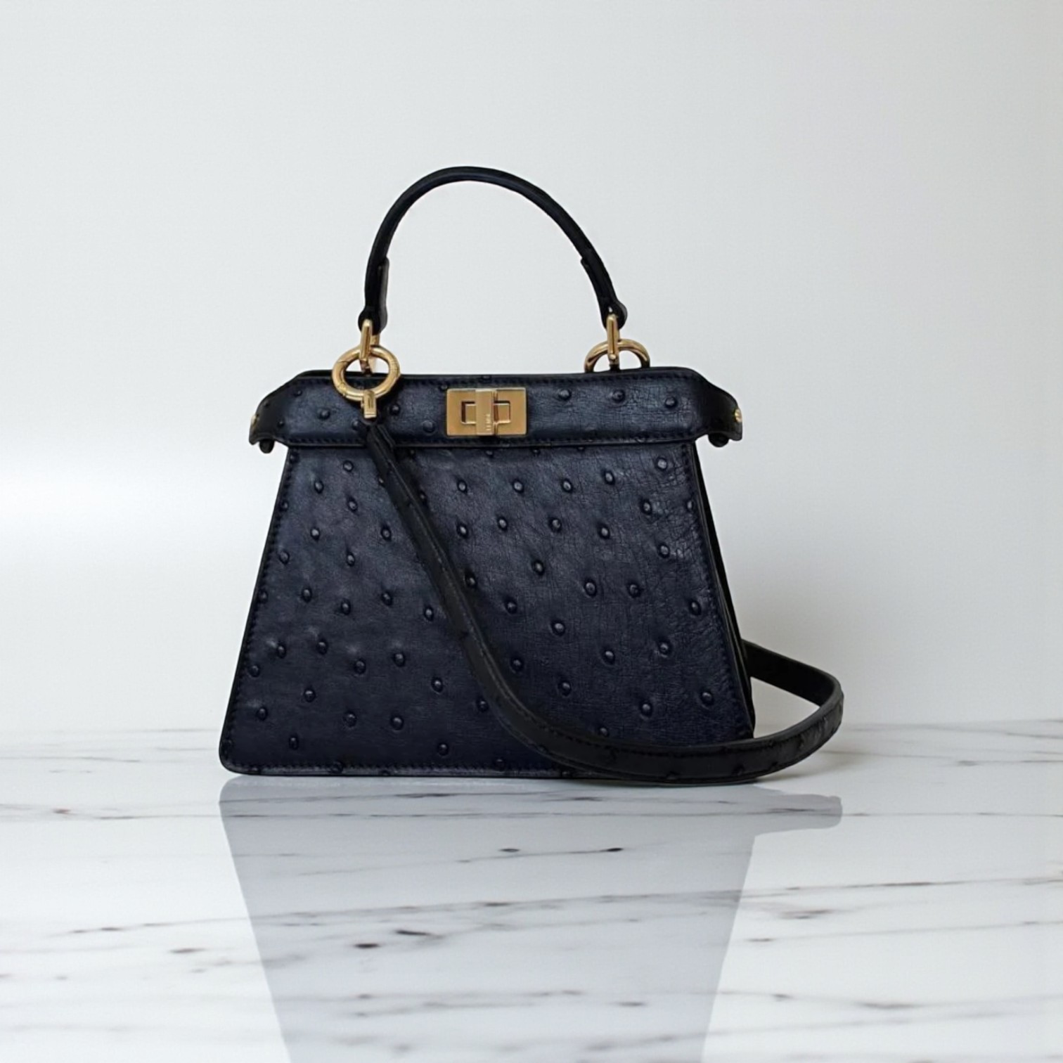 Materials Ostrich leather Size 20 cm Note: Brand Box is damaged.