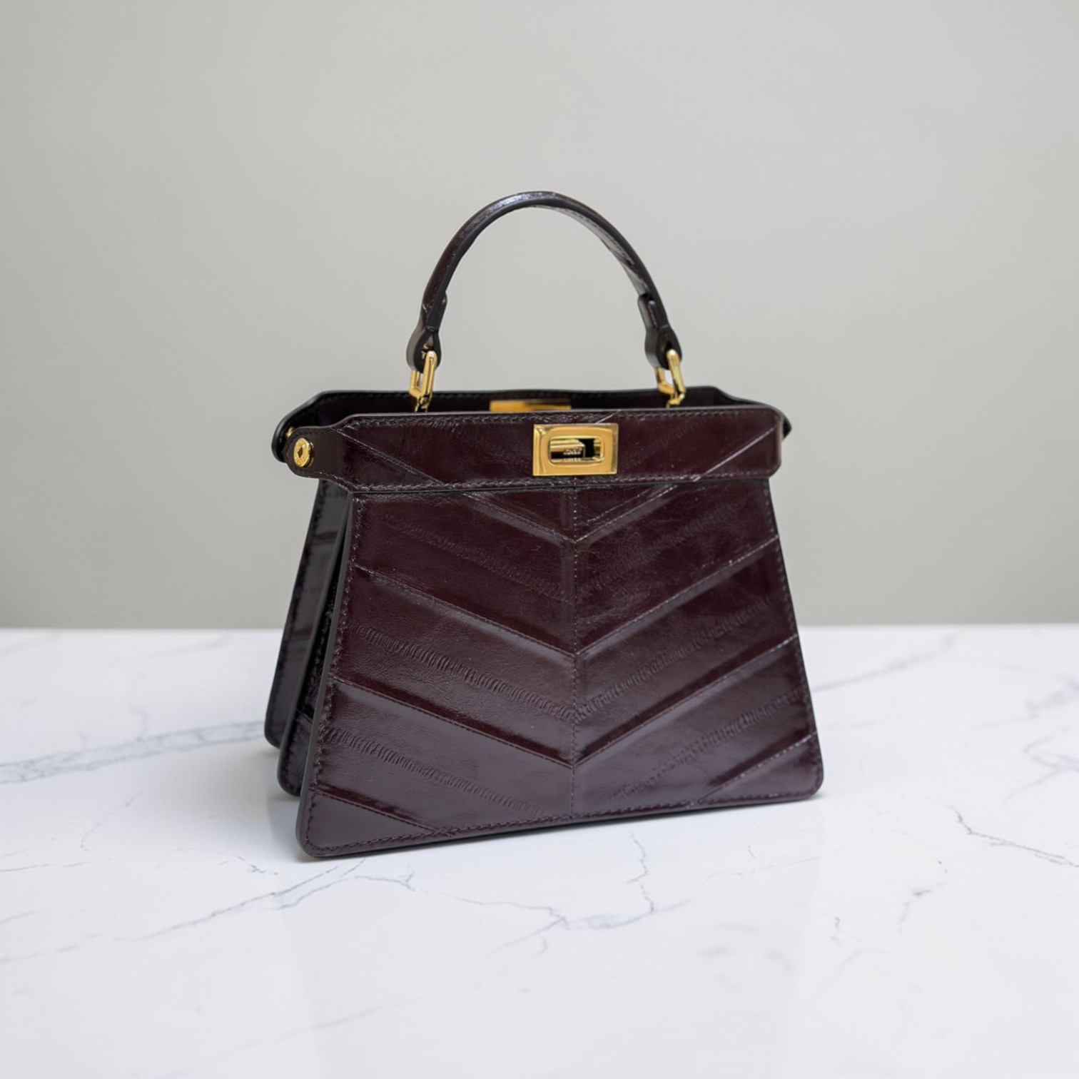 Materials Soft tone-on-tone nappa leather Size 20 cm Color Maroon Note: Brand Box is slightly damaged.
