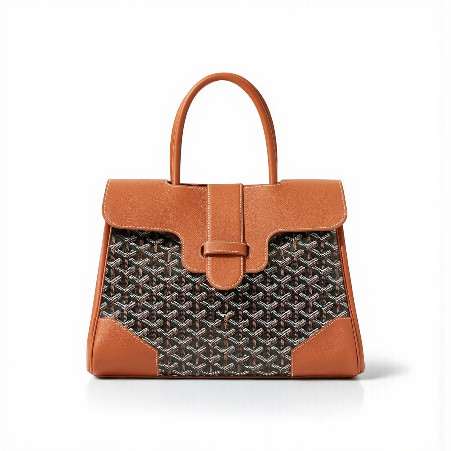 Materials Goyardine Canvas & Chevroches Calfskin Size 34 cm Color Tan Note: Bag Box is slightly damaged.