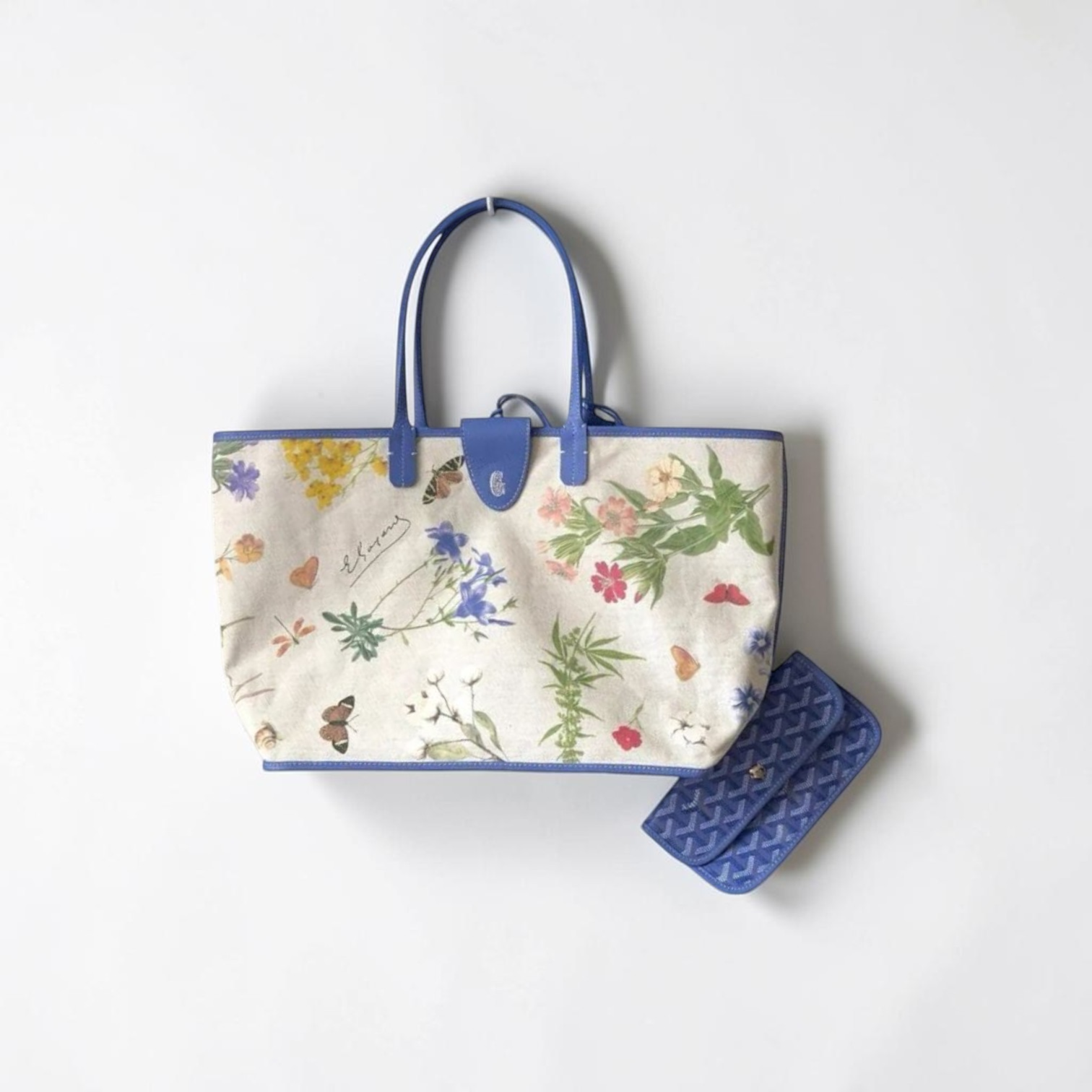 Goyard Saint Louis PM Floral Print Large Handbag Blue