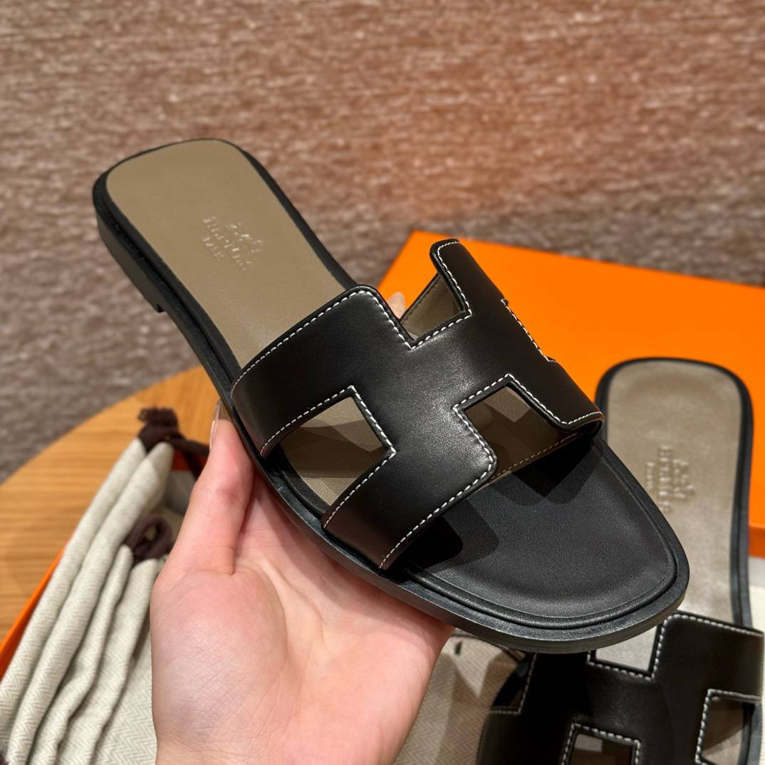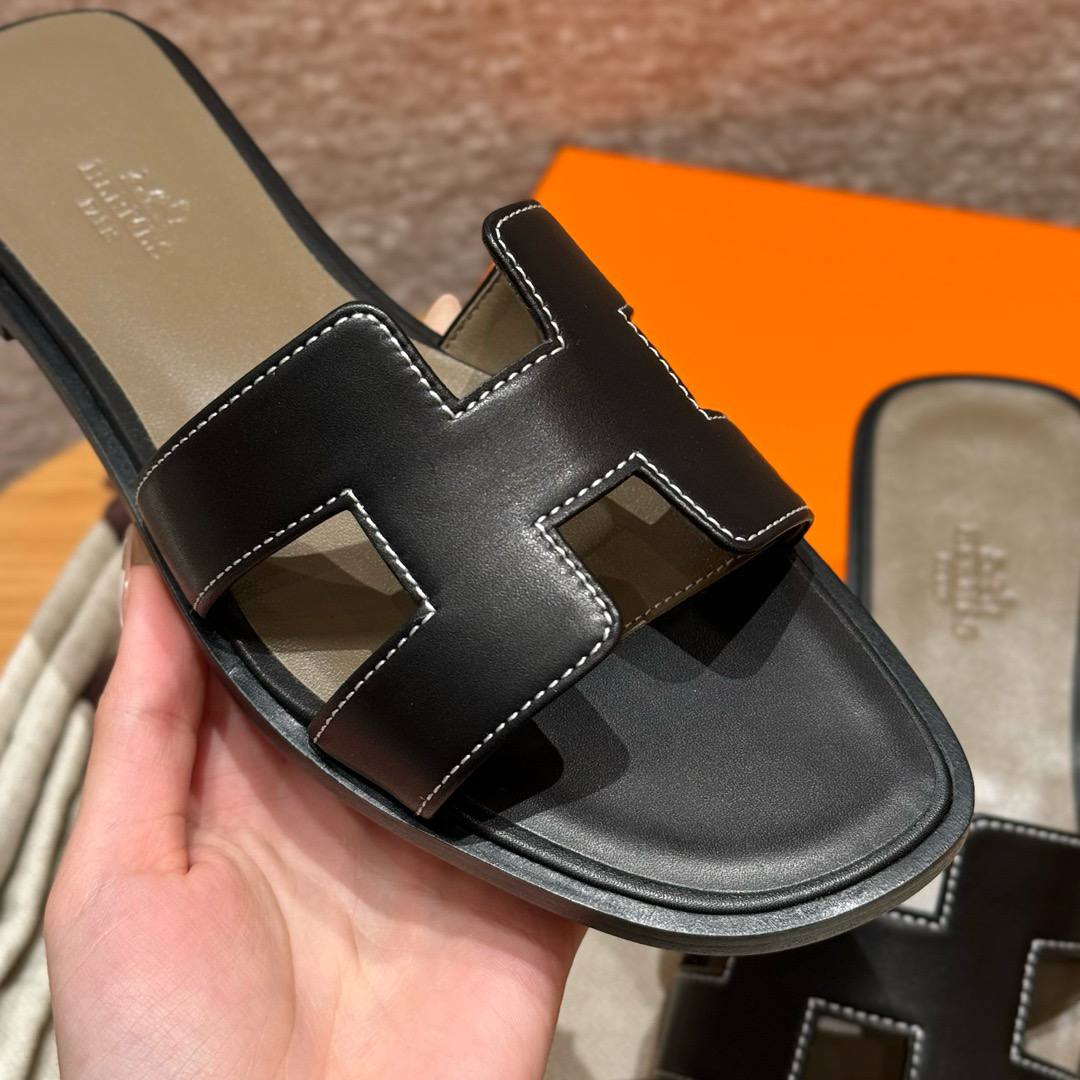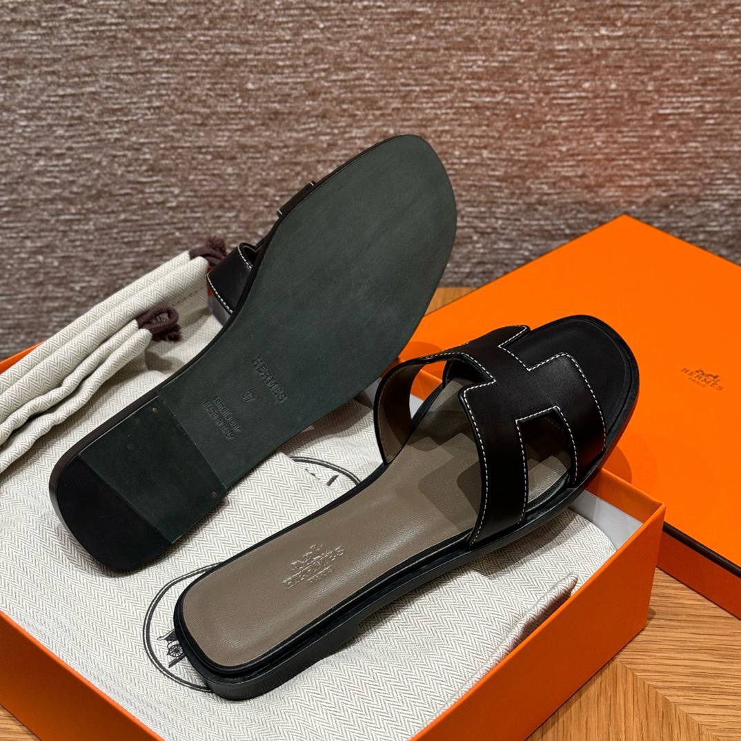 Hermes Oran Soft Sandal, Noir