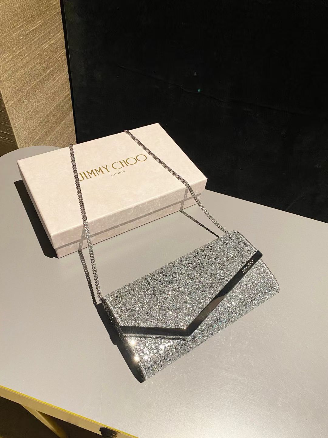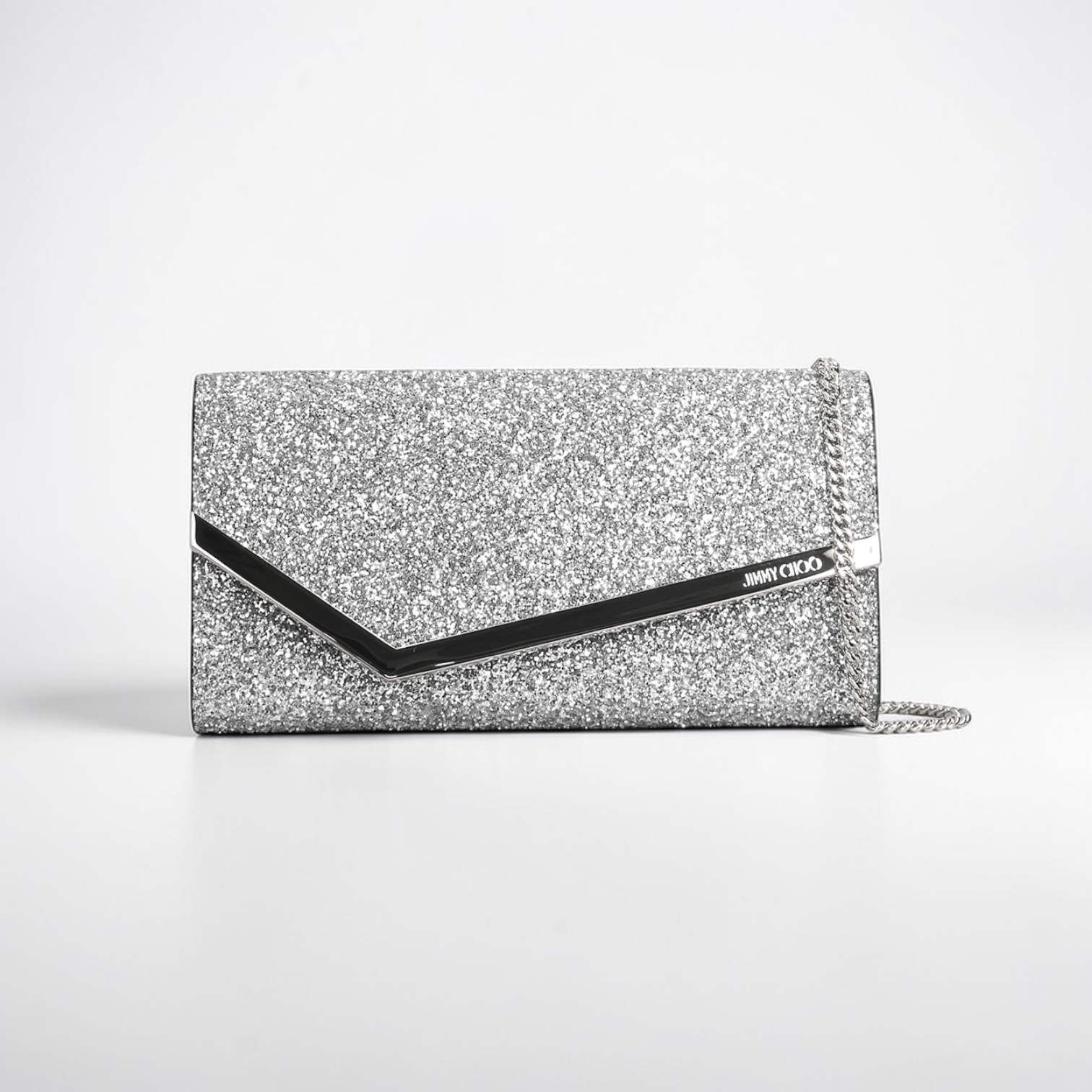 Materials  Clutch Bag in Glittered Fabric Color Silver Size 22 cm