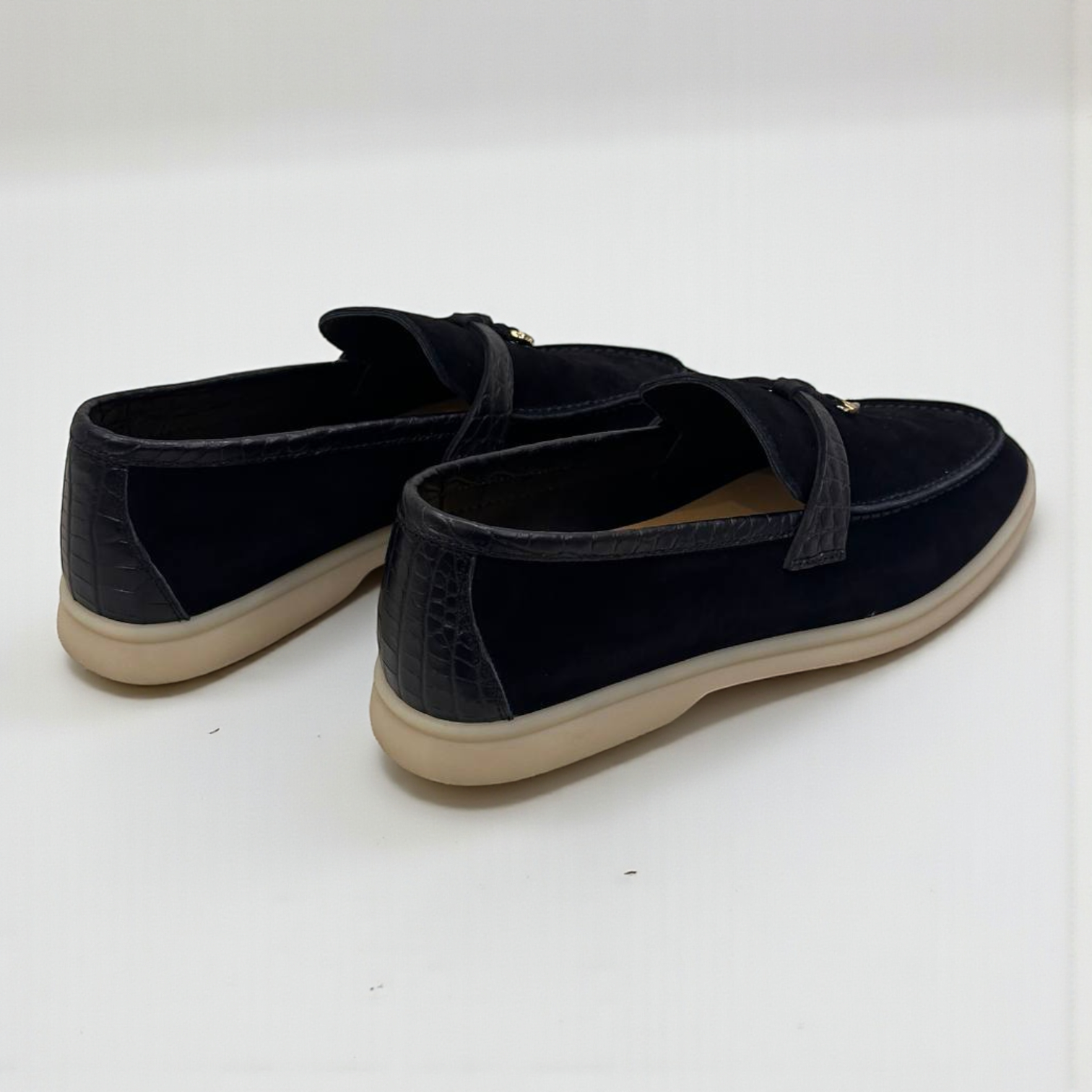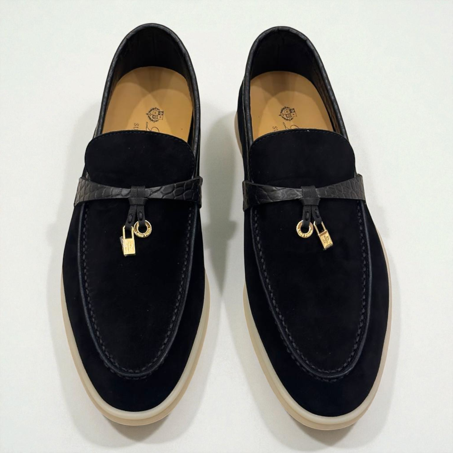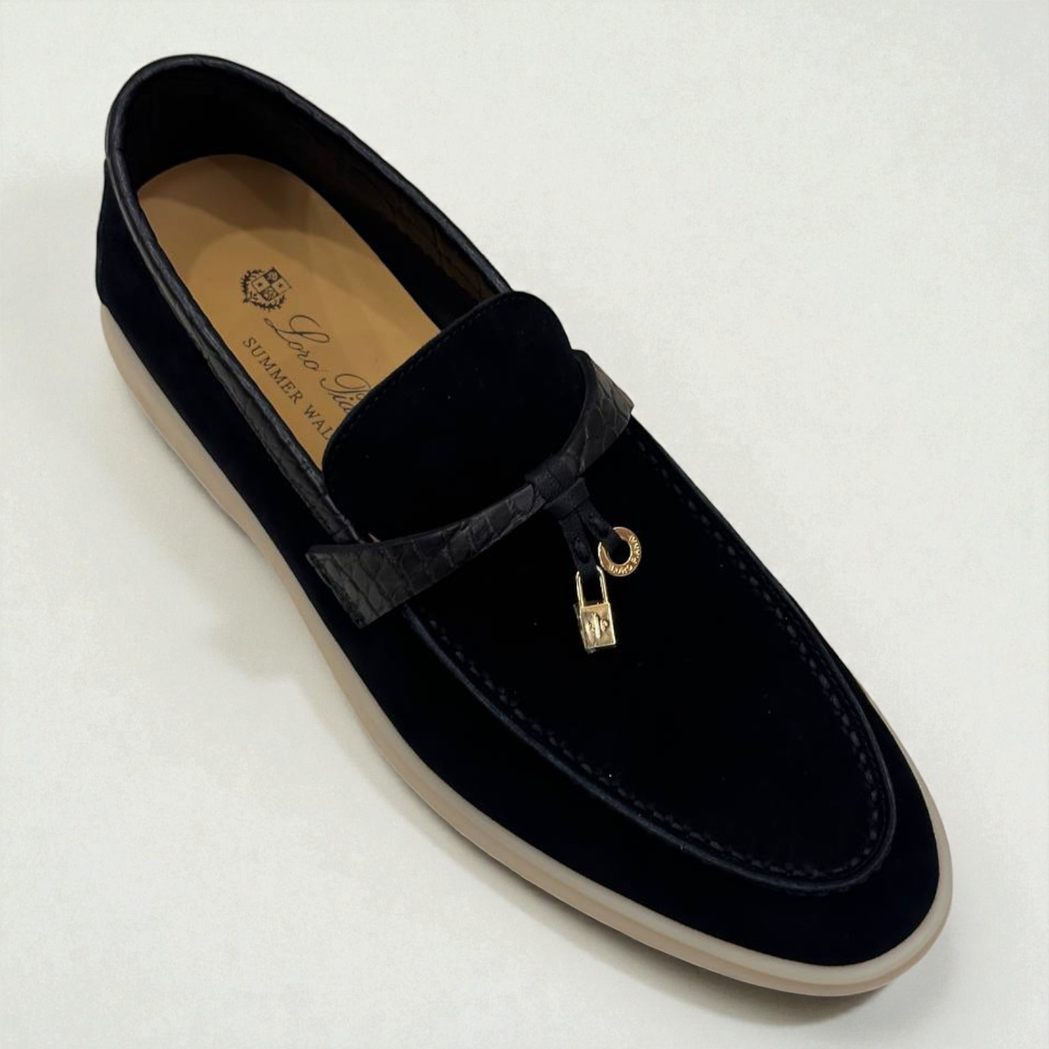 Loro Piana Summer Charms Walk Loafer Suede – Black & Alligator Leather
