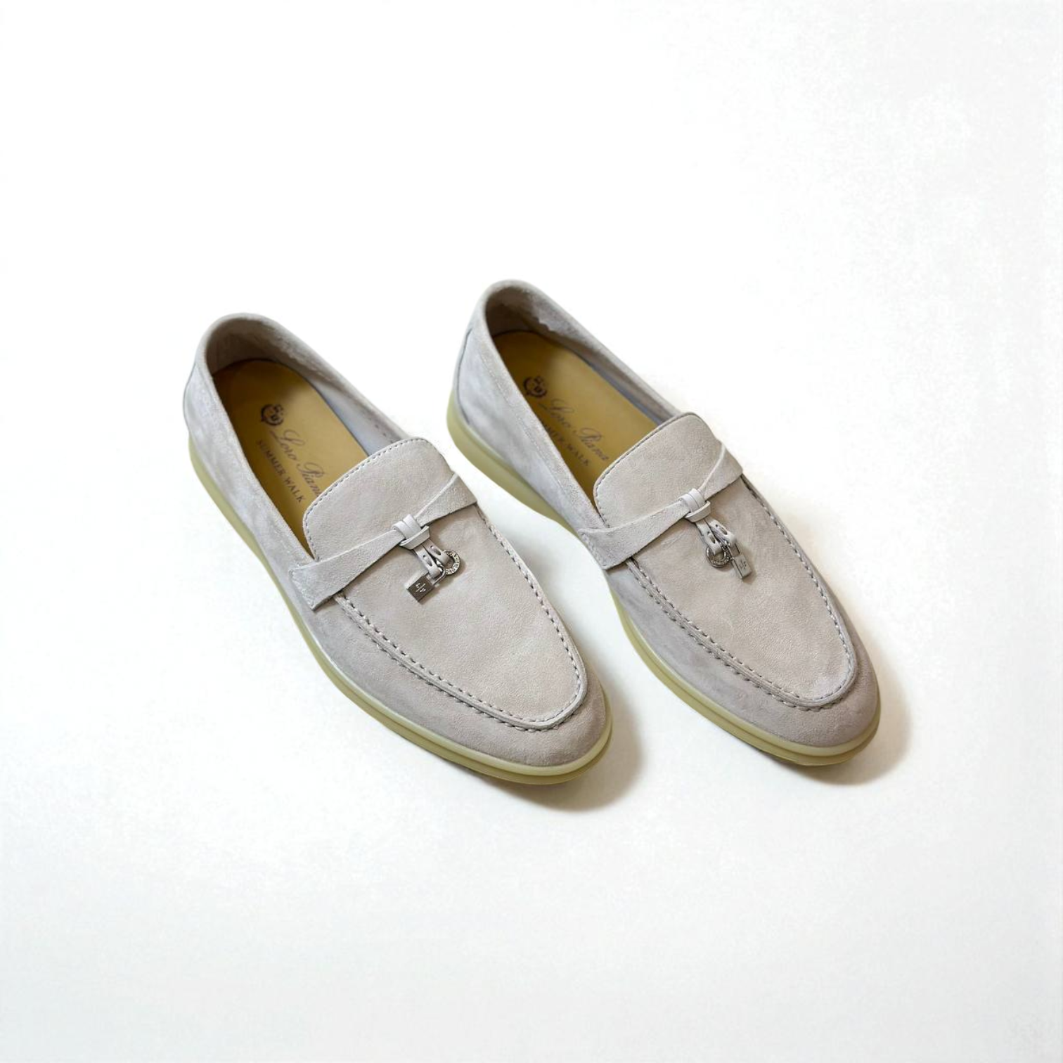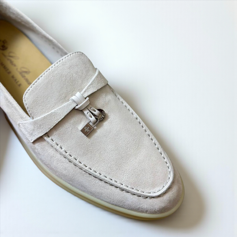 Loro Piana Summer Charms Walk Loafer Suede – Pearl White