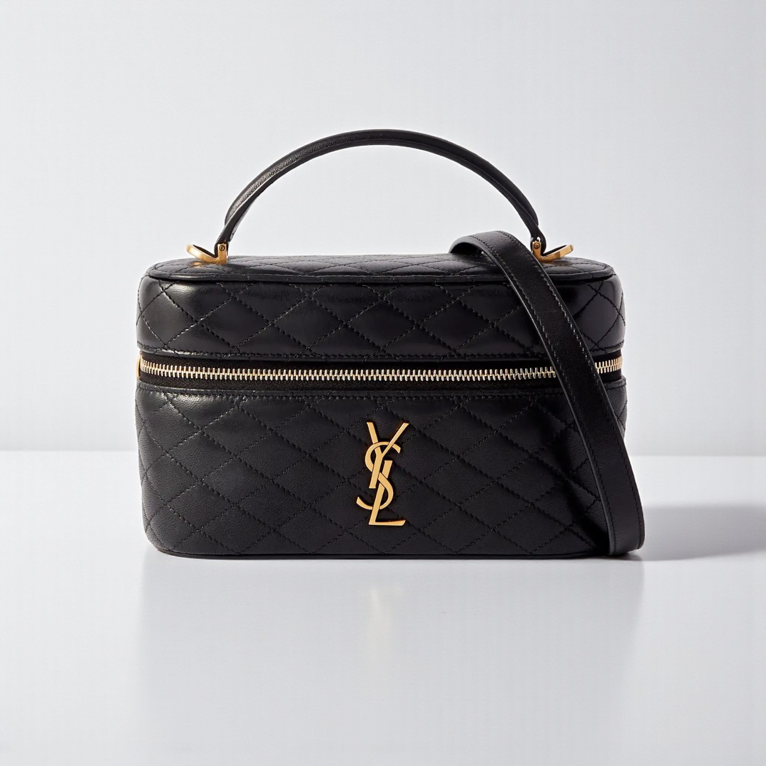 Materials Lambskin Leather Size 18 cm Color Black Note: Bag Box is damaged.
