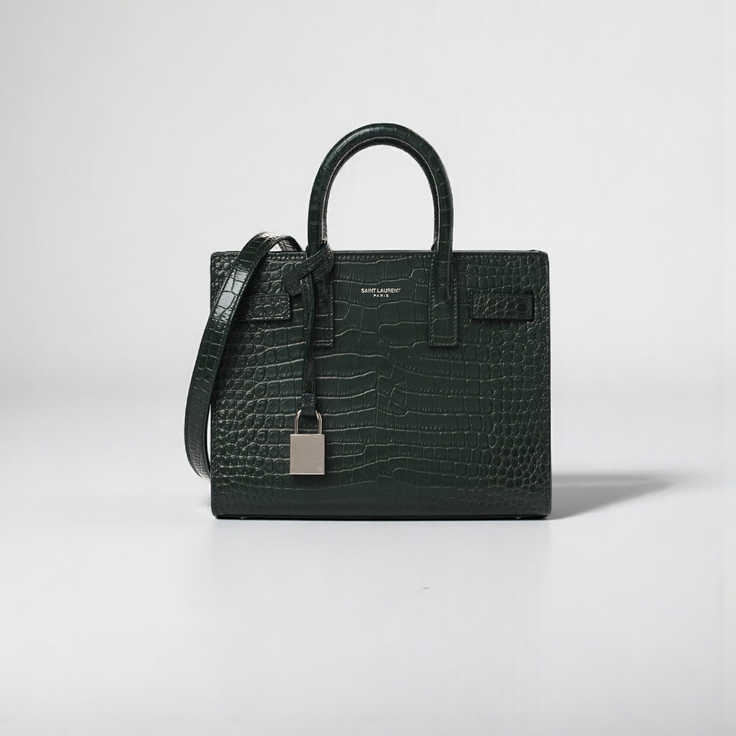 YSL Sac De Jour in Crocodile-Embossed Leather – Nano